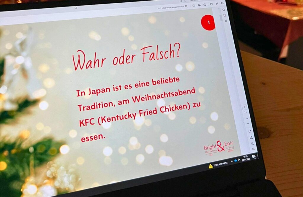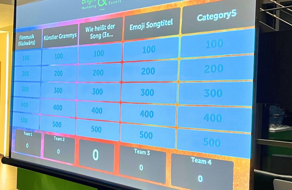 - Individuell anpassbare Themen: Auf Wunsch integrieren wir Fragen aus eurer Branche oder zu eurem Unternehmen, um das Quiz noch persönlicher zu gestalten.