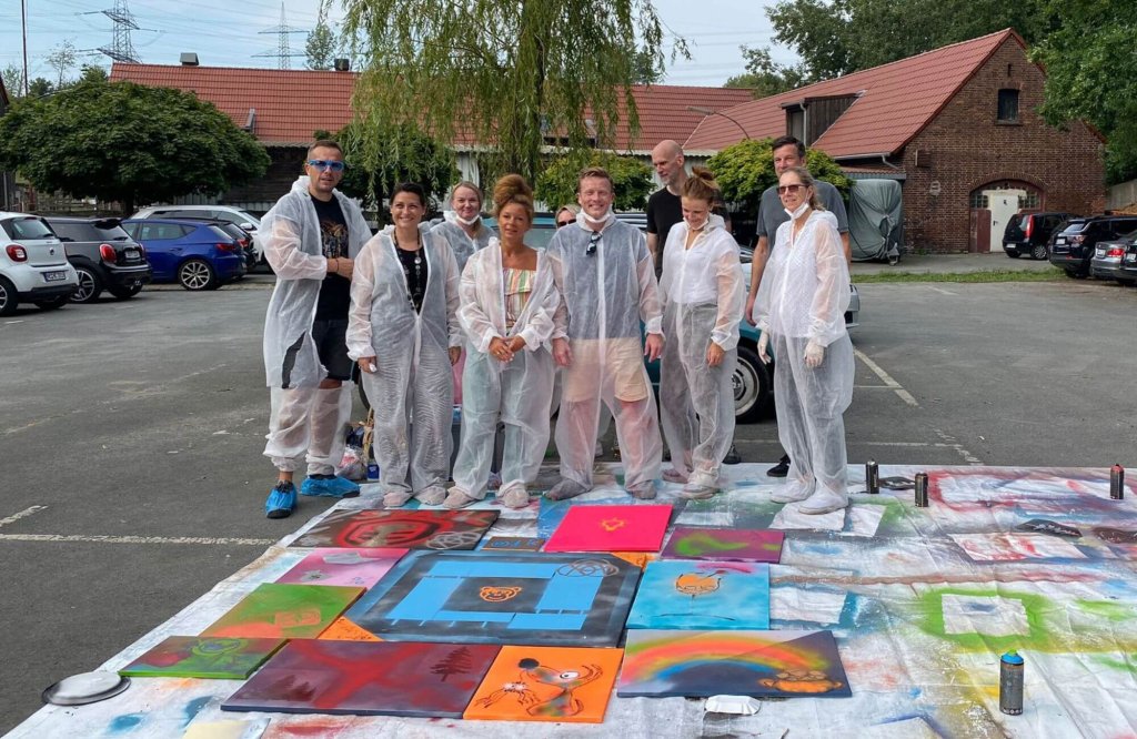 Unvergessliches Erlebnis: Ein kreativer Ausbruch aus dem Büroalltag mit Farben, Spaß und Inspiration.